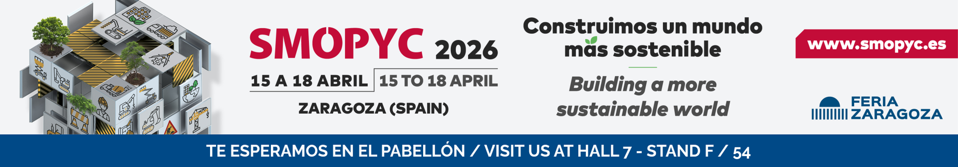 Ruedones participará en la próxima edición de SMOPYC 2026, el Salón Internacional de Maquinaria de Obras Públicas, Construcción y Minería que se celebrará en Feria de Zaragoza del 15 al 18 de abril de 2026.